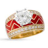 An exceptional work of art as well as one of our most captivating and sophisticated trademarked rings, our River of Love® Ring is a touching tribute to passion and romance. Mediterranean Coral is a true and rare treasure from the sea and has been revered since antiquity. A heart line flows through the center of this ring paying homage to true loves enchanting and infinite heart song. Featuring a flat edge and adorned with hand set dazzling .48 carat round brilliant pavè diamonds F in color and VS1 in clarity. This ring can accommodate a variety of center diamond shapes and sizes starting at .50 carats, available by special order.