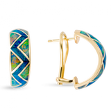Embrace the artistry of Santa Fe with the River of Love® Half Hoop Earrings. Handcrafted to perfection, these earrings combine the brilliance of 14k gold with vibrant inlaid opal, forming a striking design inspired by the flowing curves of nature. The sleek, chevron pattern adds a bold yet elegant contrast, perfectly complementing the mesmerizing play of colors within each opal.