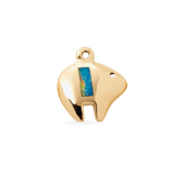 The Bear represents a protector and symbolizes strength, courage, and leadership. Australian blue-green Opal inlay is featured on one side of this charm and Australian fire Opal is featured on the opposite side of this charm. Cast in 14 karat gold. Available in white or yellow gold. This charm is available with Sleeping Beauty Turquoise, Spiderweb Turquoise, and Mediterranean Coral by special order. Also available in sterling silver by special order. Contact a sales associate for information and pricing on special orders. This charm measures approximately 16 millimeters wide x 16.5 millimeters.